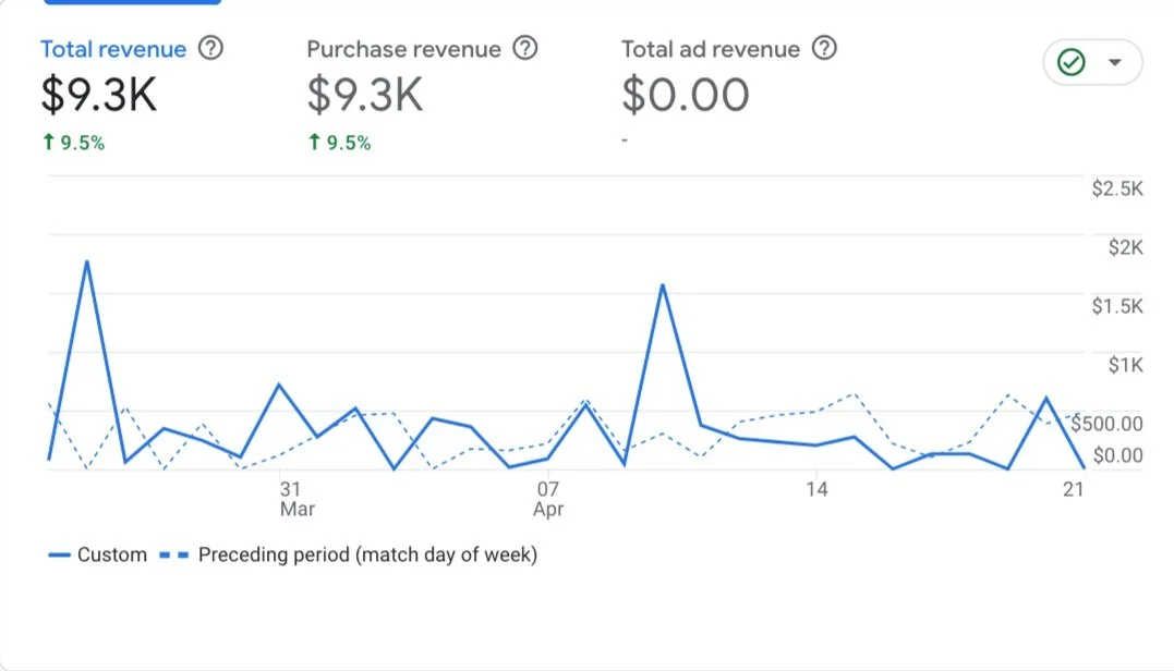 The analysis period spanned from Monday, March 25th, to Sunday, April 26th, 2024, covering 28 days and a full 4 weeks of data. The comparison between this period and the same timeframe from the previous year yielded significant improvements across key performance metrics, showcasing the impact of the implemented optimizations on Waders.com's online performance.